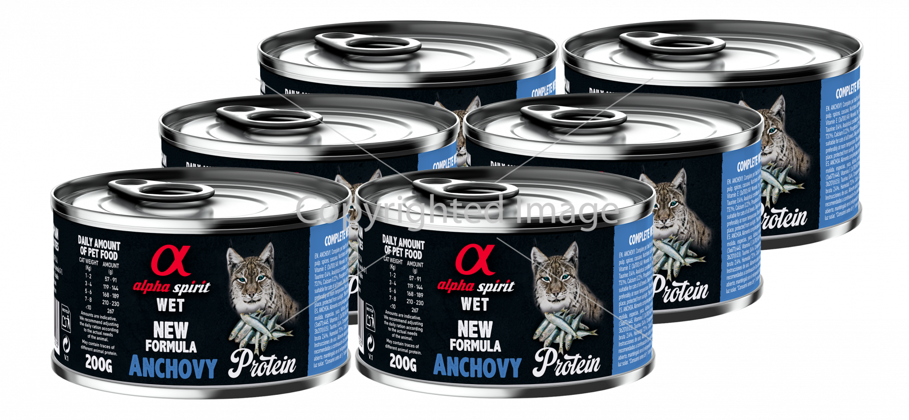 Вологий корм Alpha Spirit Anchovy for Adult Cats для стерилізованих котів створюється з інгредієнтів преміальної якості з добавкою таурину, де єдиним джерелом протеїну є анчоуси.