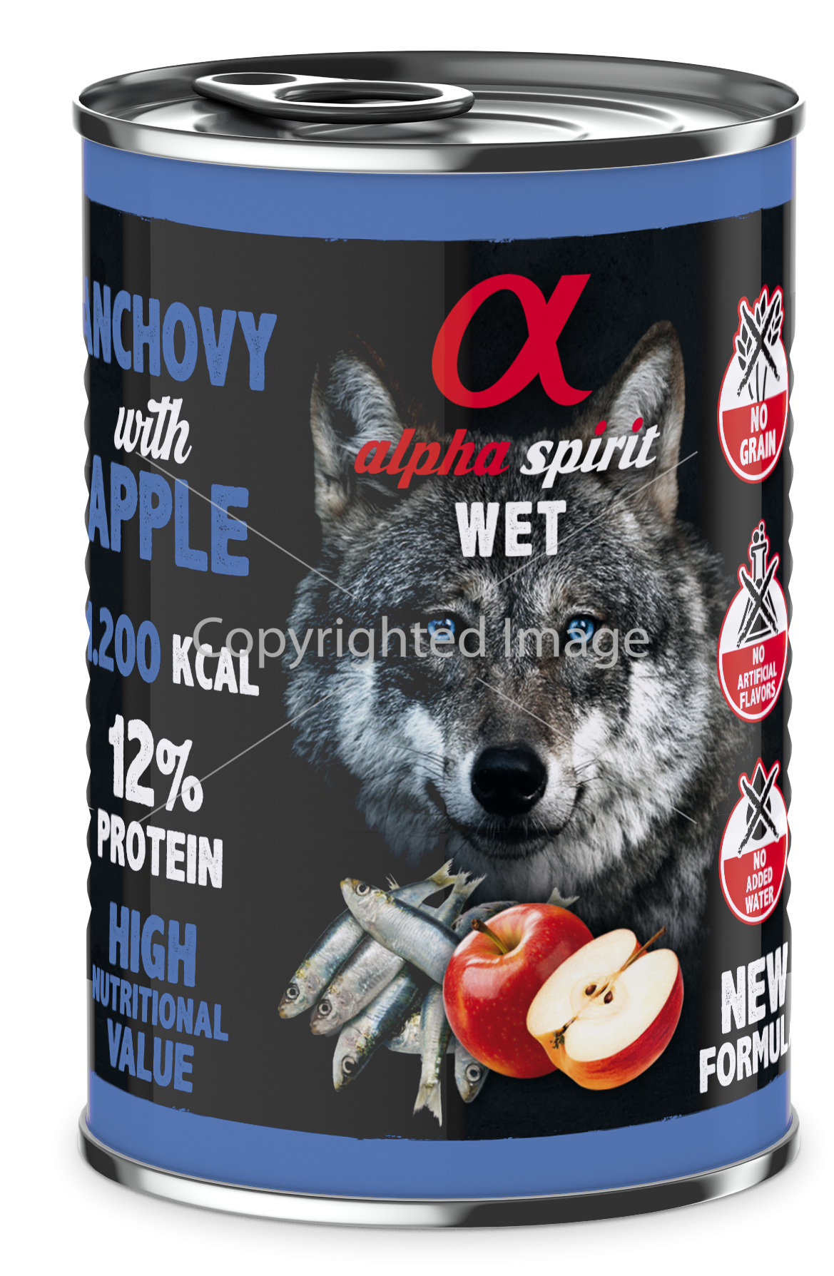 Вологий корм Alpha Spirit Anchovy With Red Apple готується з використанням єдиного джерела протеїну - з анчоусів (93%), з додаванням маленьких шматочків свіжих червоних яблук.