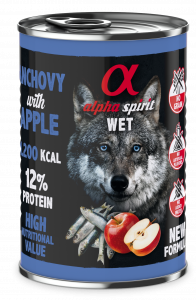 Ніжна та смачна рецептура вологого корму Альфа Спіріт з анчоусами та червоними яблуками у формі паштету створена для дорослих собак всіх порід.