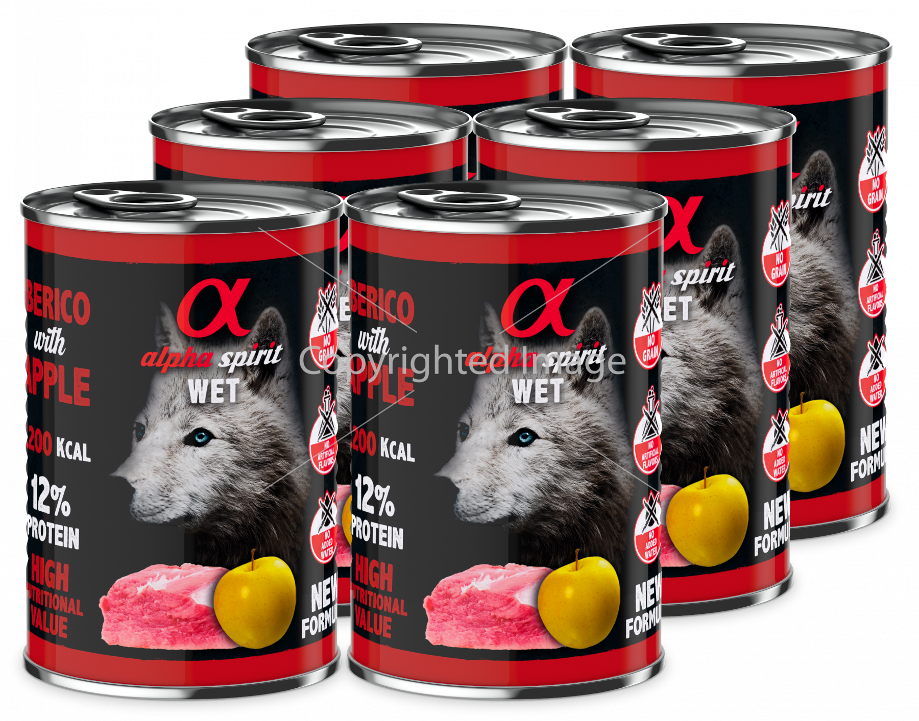 Вологий корм Alpha Spirit Iberian Pork With Yellow Apple готується з використанням єдиного джерела протеїну – іберійської свинини, з додаванням шматочків свіжих жовтих яблук.