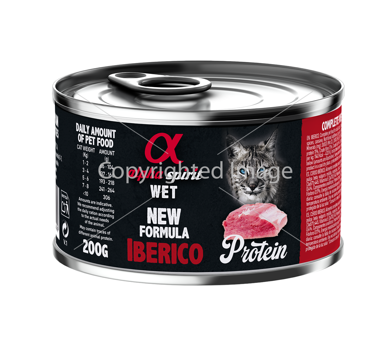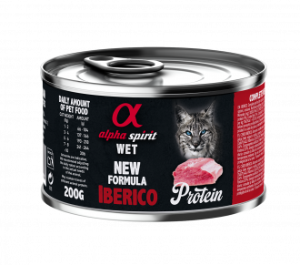 Вологий корм Alpha Spirit Iberico for Adult Cats для дорослих котів виготовляється з інгредієнтів преміальної якості з добавкою таурину, де єдиним джерелом протеїну є іберійська свинина.