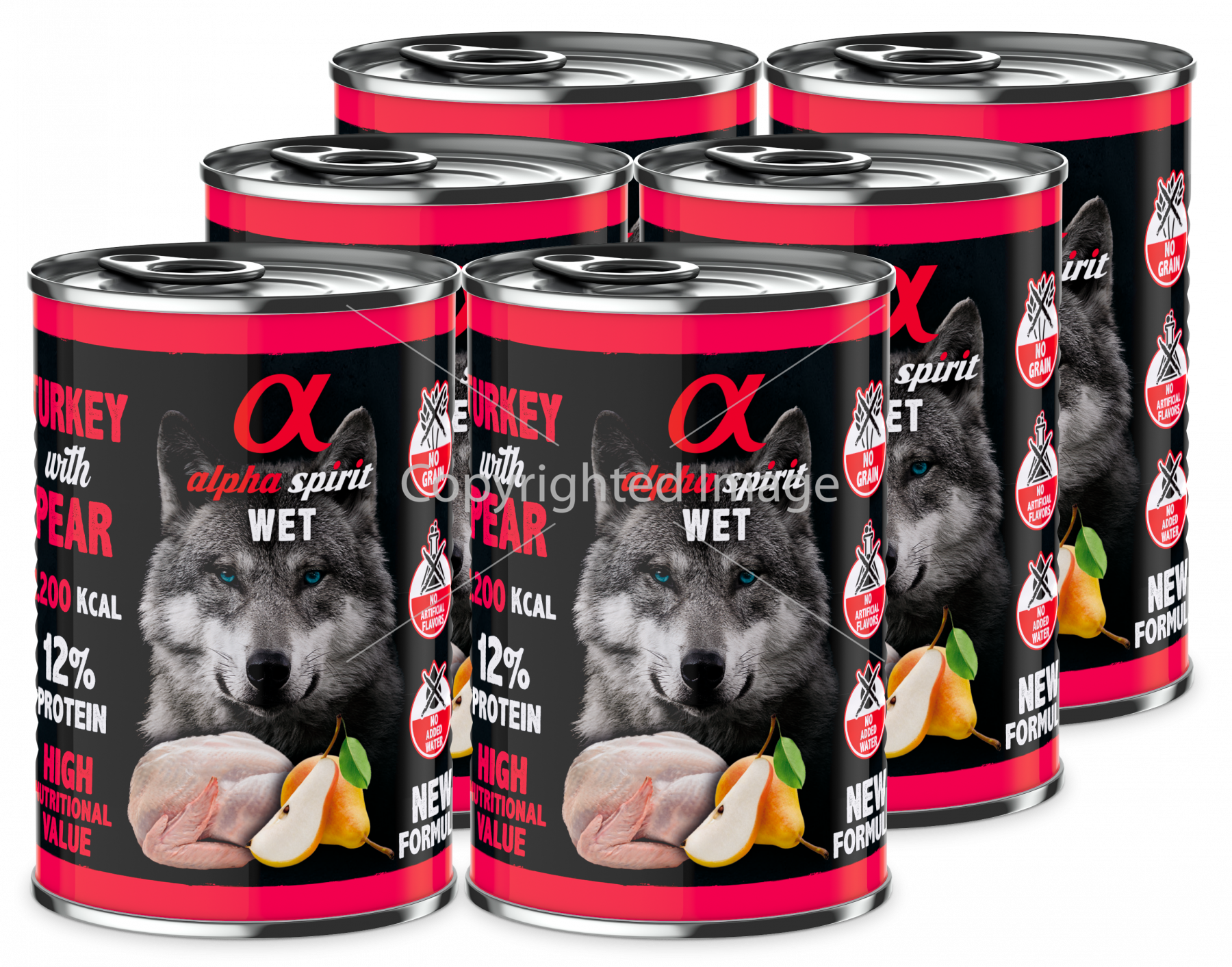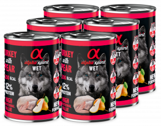 Вологий корм Alpha Spirit Turkey with Pear виготовляється з використанням єдиного джерела протеїну – індички, з додаванням ніжних шматочків груші.