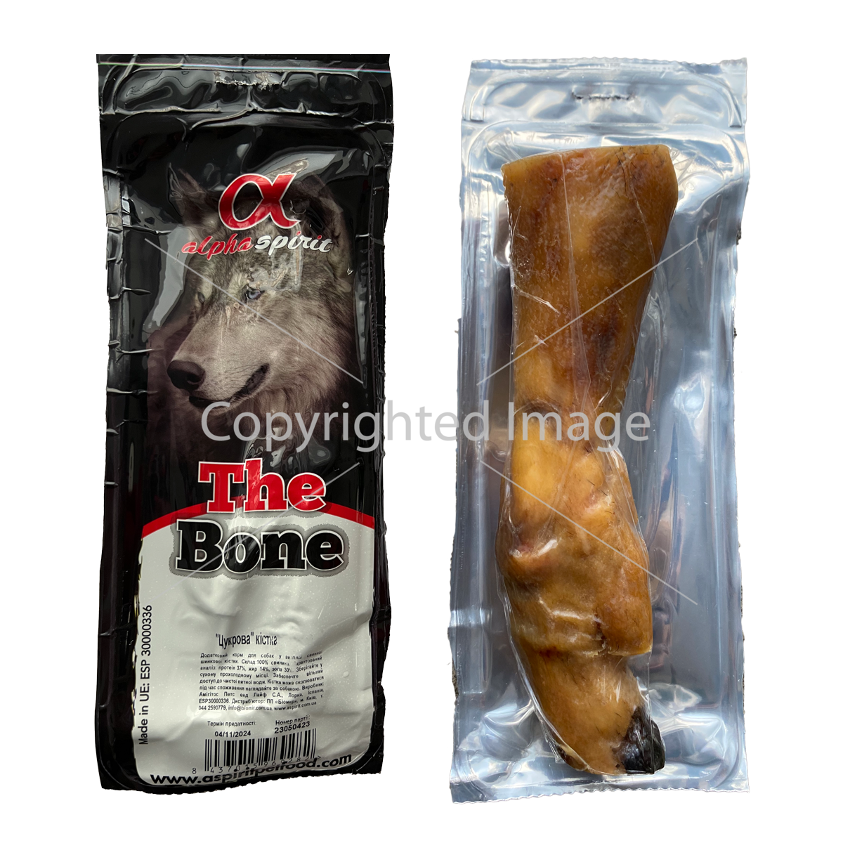 Кістки Alpha Spirit проходять попередню обробку за спеціальною технологією, яка включає: видалення надлишків солі (адже це кістки з хамону), термічну обробку при температурі понад 100С протягом години, і охолодження з подальшим вакуумуванням в стерильному середовищі.
