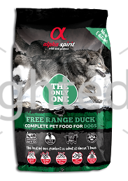 Раціон Alpha Spirit The Only One Free Range Duck створений лише зі свіжого м'яса птиці та риби, для приготування 1 кг корму використовується 2,3 кг свіжого м’яса та 0,28 кг свіжої риби при бережному процесі приготування за низьких температур, забезпечуючи збереження всіх поживних речовин, вітамінів та мінералів. Іншою великою перевагою цього раціону є те, що він не містить доданих жирів, зернових та глютену.
