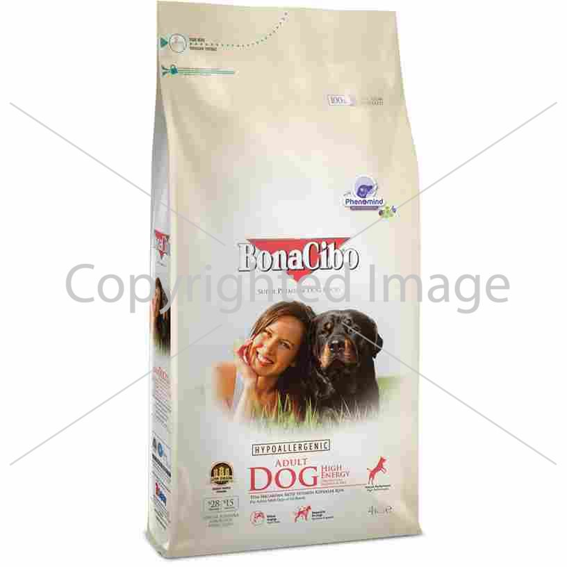 БОНАСІБО ЕДАЛТ ДОГ ХАЙ ЕНЕРДЖИ містить високі рівні протеїну та жиру для підтримки високої активності та при постійних фізичних навантаженнях.