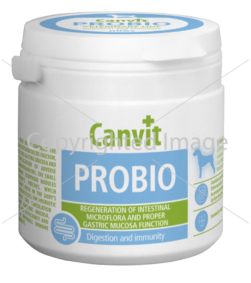 Добавка Canvit Probio - це комплекс пробіотиків, пребіотиків та вітамінів, який запобігає надмірному розвитку патогенних бактерій та підтримує мунітет у кишківнику під час діареї та антибіотикотерапії.