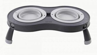 DEXAS Миска подвійна Дабл Фідер на складній підставці-мала 240 мл (світло-сіра)