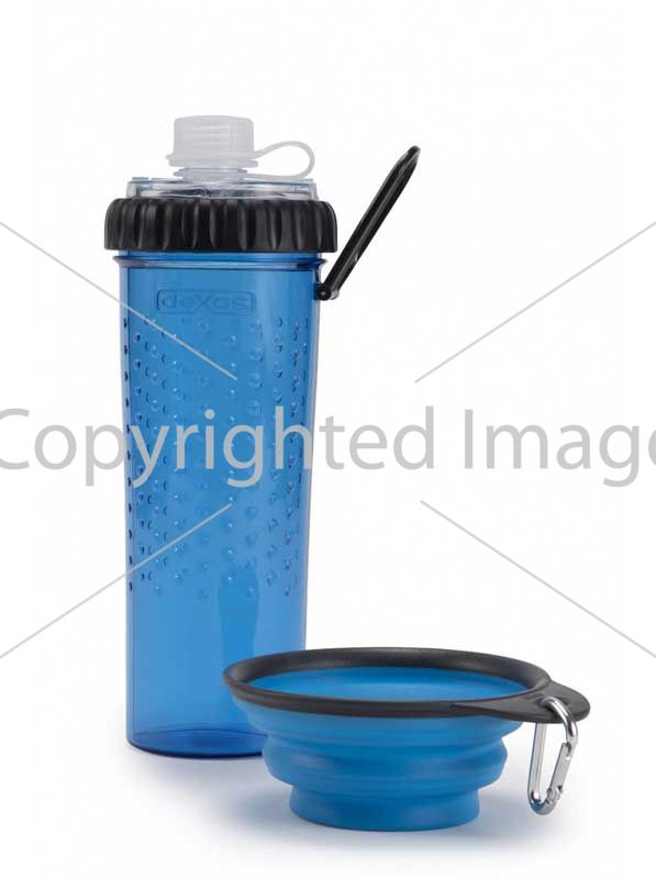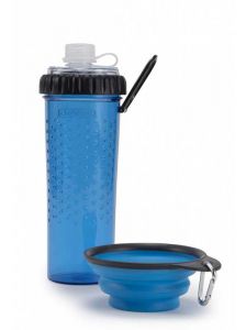 DEXAS Пляшка подвійна СнекДуо під рідину і корм зі складною мискою 720мл (блакитна)