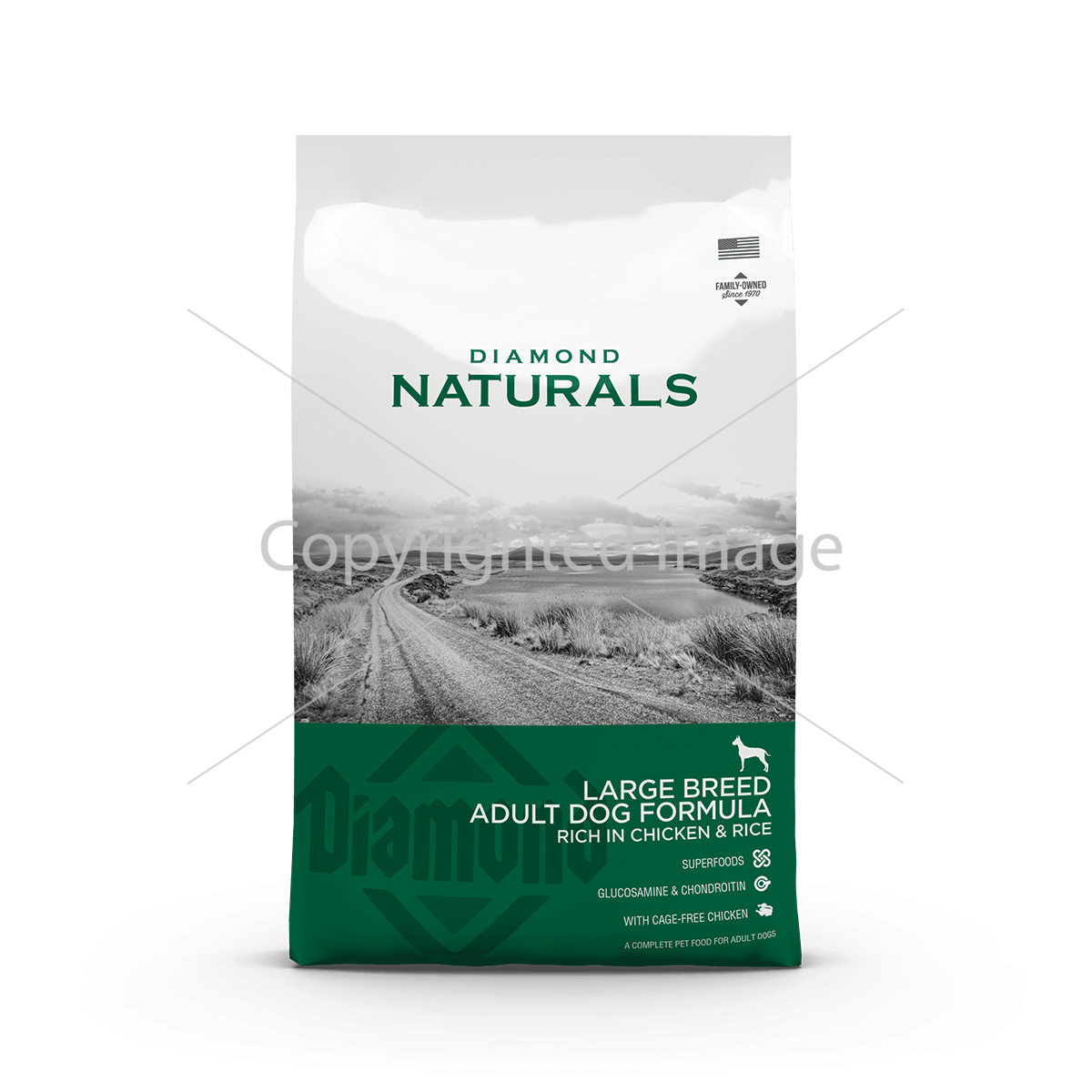 Формула Даймонд Нейчуралс Едалт Лардж Брід Чікен енд Райс створена у відповідності до рівнів поживності, встановлених AAFCO для дорослих собак.