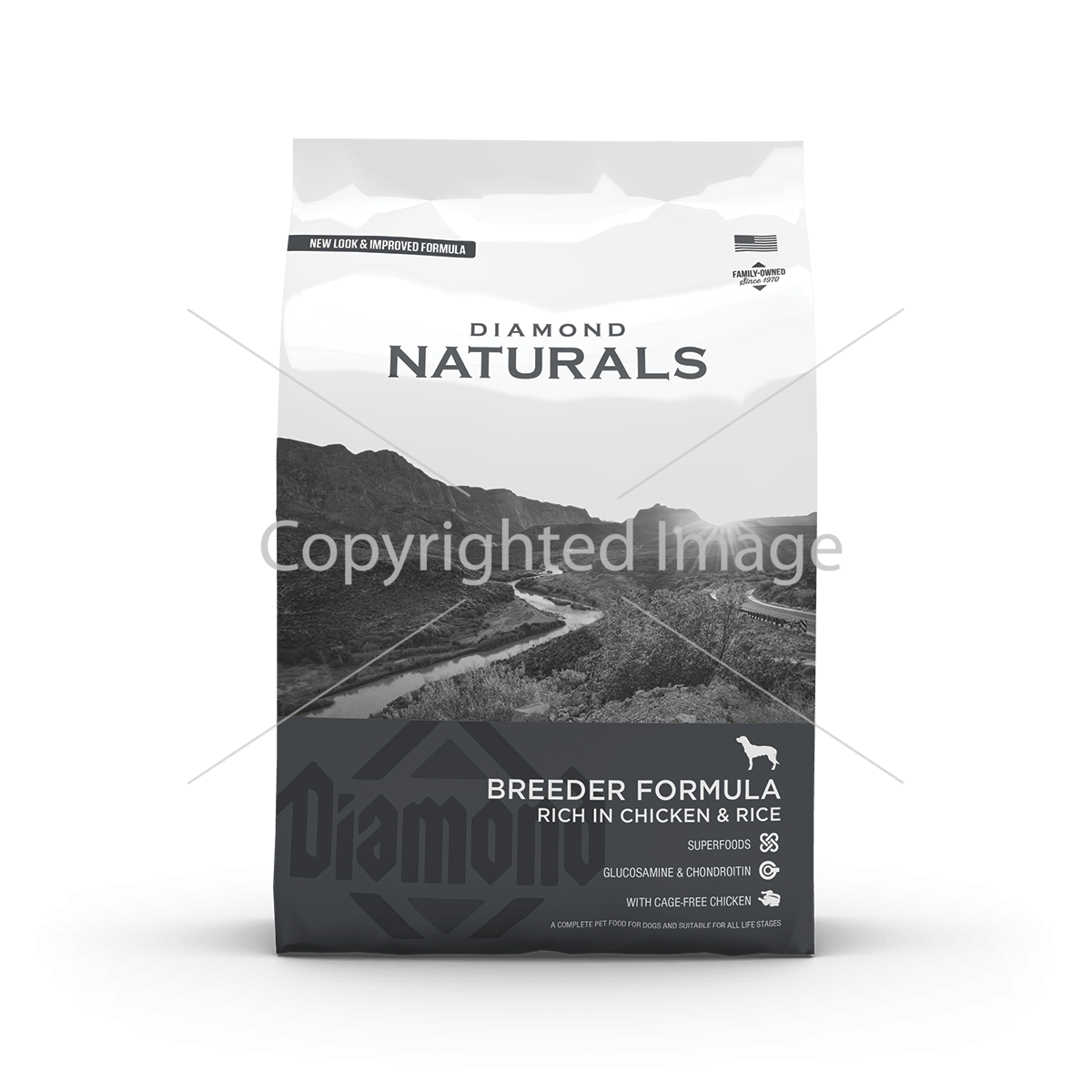 Формула Даймонд Нейчуралс Брідер Формула Чікен енд Райс створена у відповідності до рівнів поживності, встановлених AAFCO для собак всіх порід і всіх стадій життя, включаючи собак великих порід в період зростання.