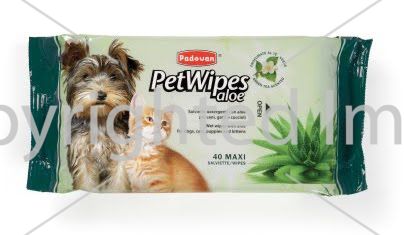 Pet Wipes Aloe/Очищаючі вологі серветки з алоє вера та зел. чаєм PADOVAN Pet Wipes Aloe 40 шт