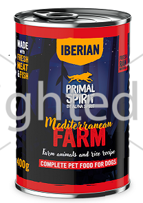 Прімал СПІРІТ ІБЕРІАН. МЕДІТЕРРАНІАН ФАРМ. Повнораціонний вологий корм для дорослих собак.