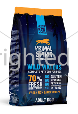 Прімал Спіріт 70% Вайлд Вотерс – це натуральний повнораціонний сухий корм без глютену для дорослих собак, виготовлений зі свіжих інгредієнтів (70%), з щедрим вмістом м’ясних протеїнів, рисом, з додаванням природних джерел вітамінів та мінералів.