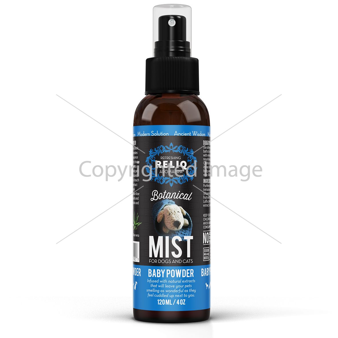 Спрей-одеколон з ароматом дитячої присипки для догляду та зволоження шерсті собак.