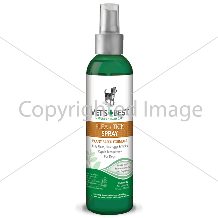 Vet's Best Flea and Tick Spray містить у своєму складі унікальну комбінацію олій м'яти та евгенолу (з рослини гвоздика), які ефективно знищують бліх, блошині яйця та кліщів при контакті.